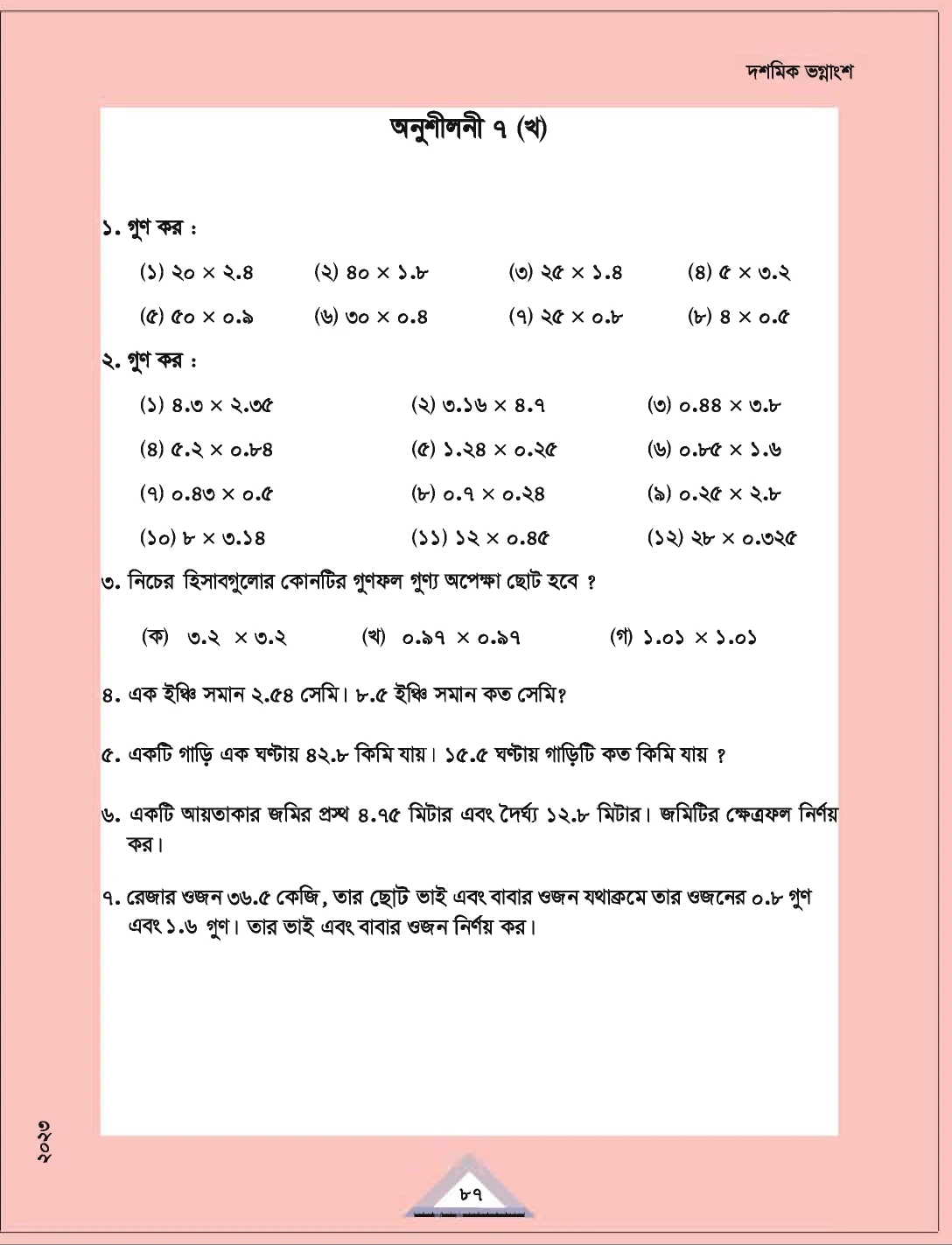 ইবতেদায়ি পঞ্চম শ্রেণির গণিত